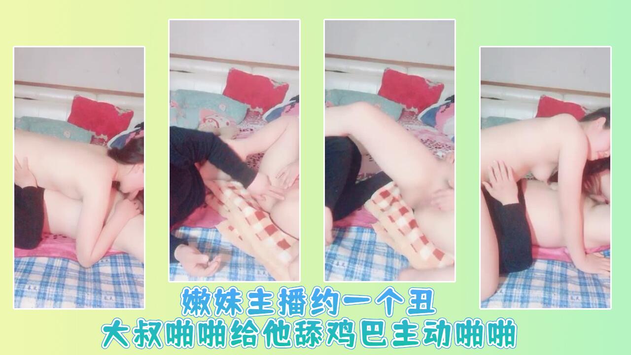 嫩妹主播约一个丑大叔啪啪给他舔鸡巴主动啪啪。