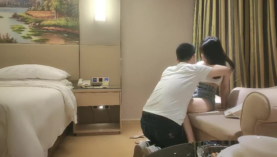 齐逼牛仔短裤极骚外围小姐姐,掏出大奶子吸吮,张开双腿揉穴,肩上扛大力抽插猛操。