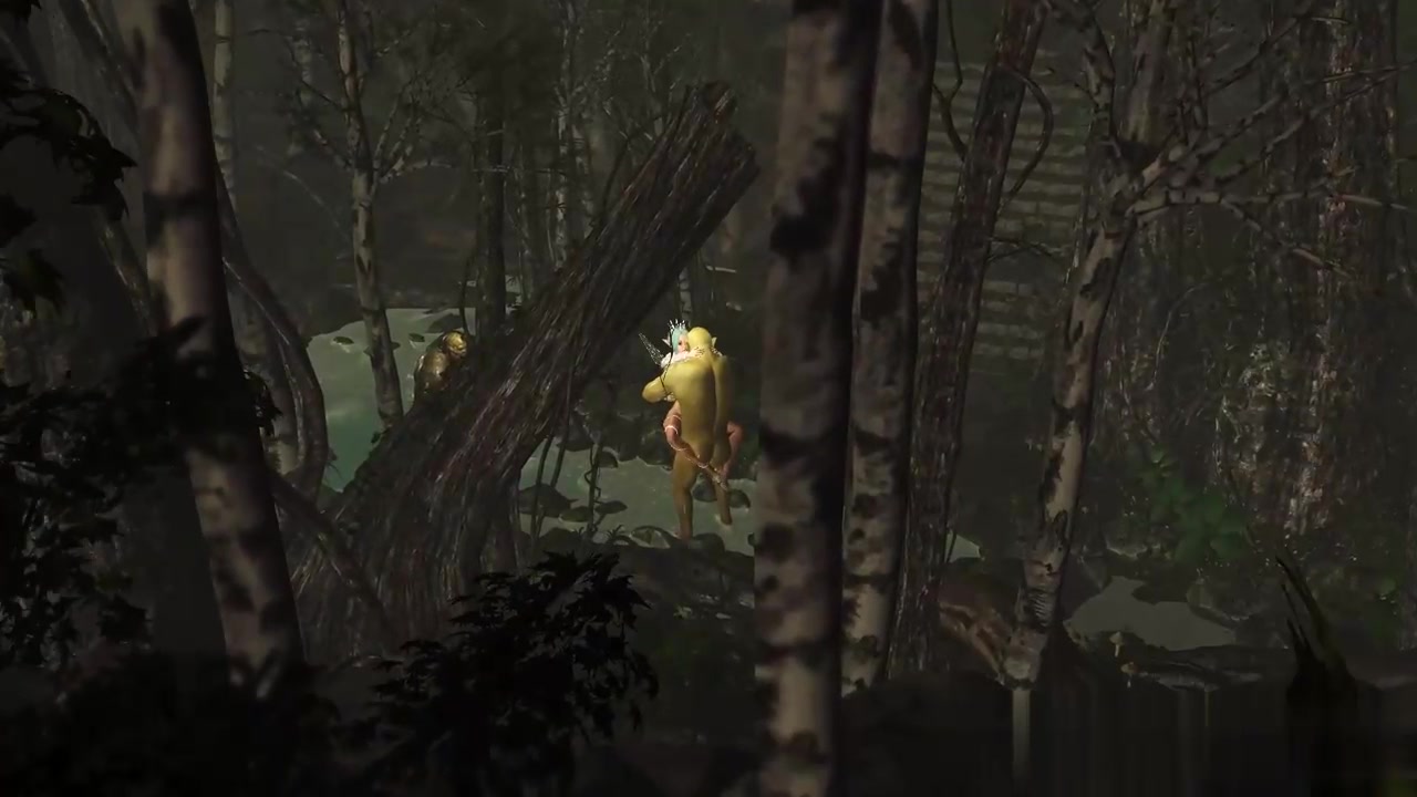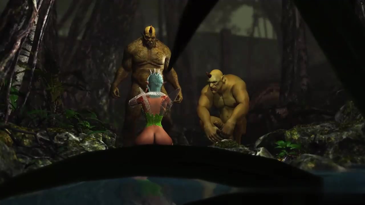 三人组一个美丽的仙女和两个兽人在夜森林