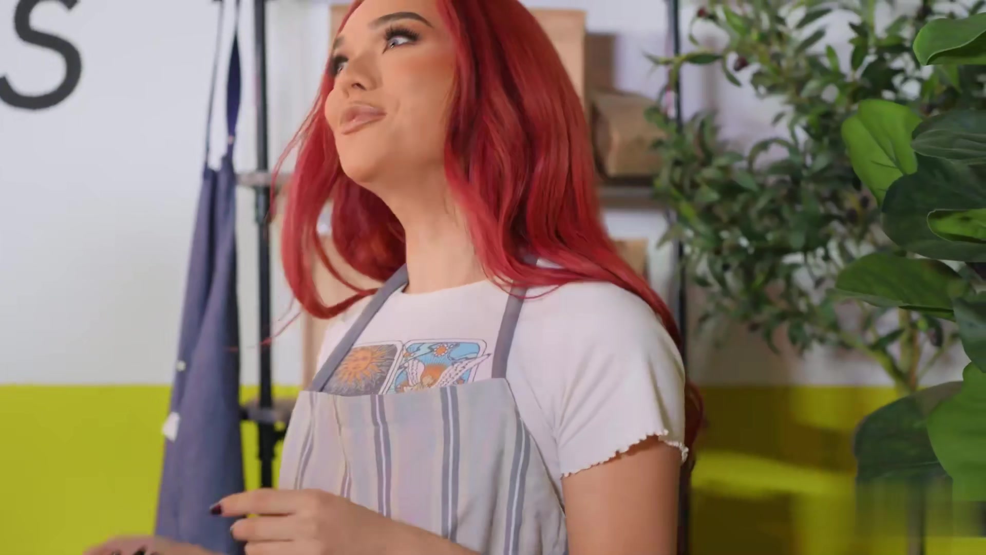 红发妩媚汉堡店服务员竟然是人妖看到客人拿出鸡巴勾引帅哥来玩屁股啪啪