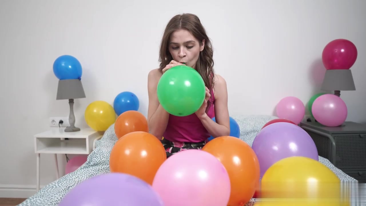 一个秃头男人观看一个可爱的女孩操她紧致的阴户