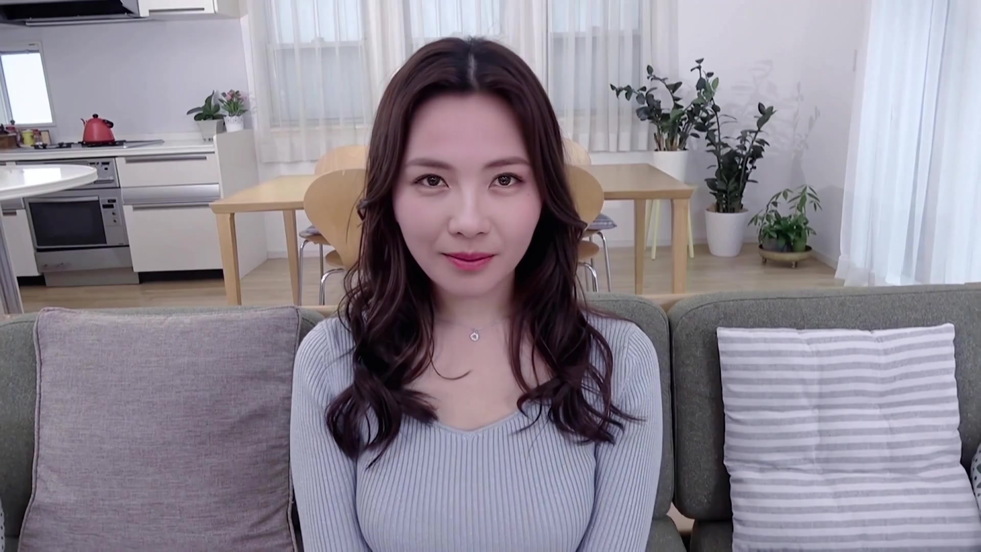 她穿着一条激进的丁字裤在房子里走来走去1
