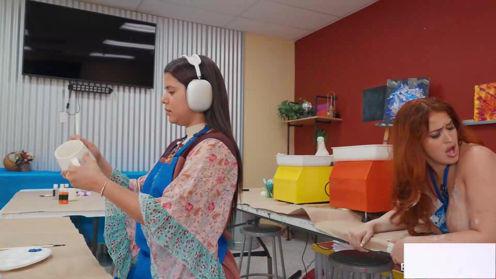 美女和闺蜜犯错一起被老板惩罚