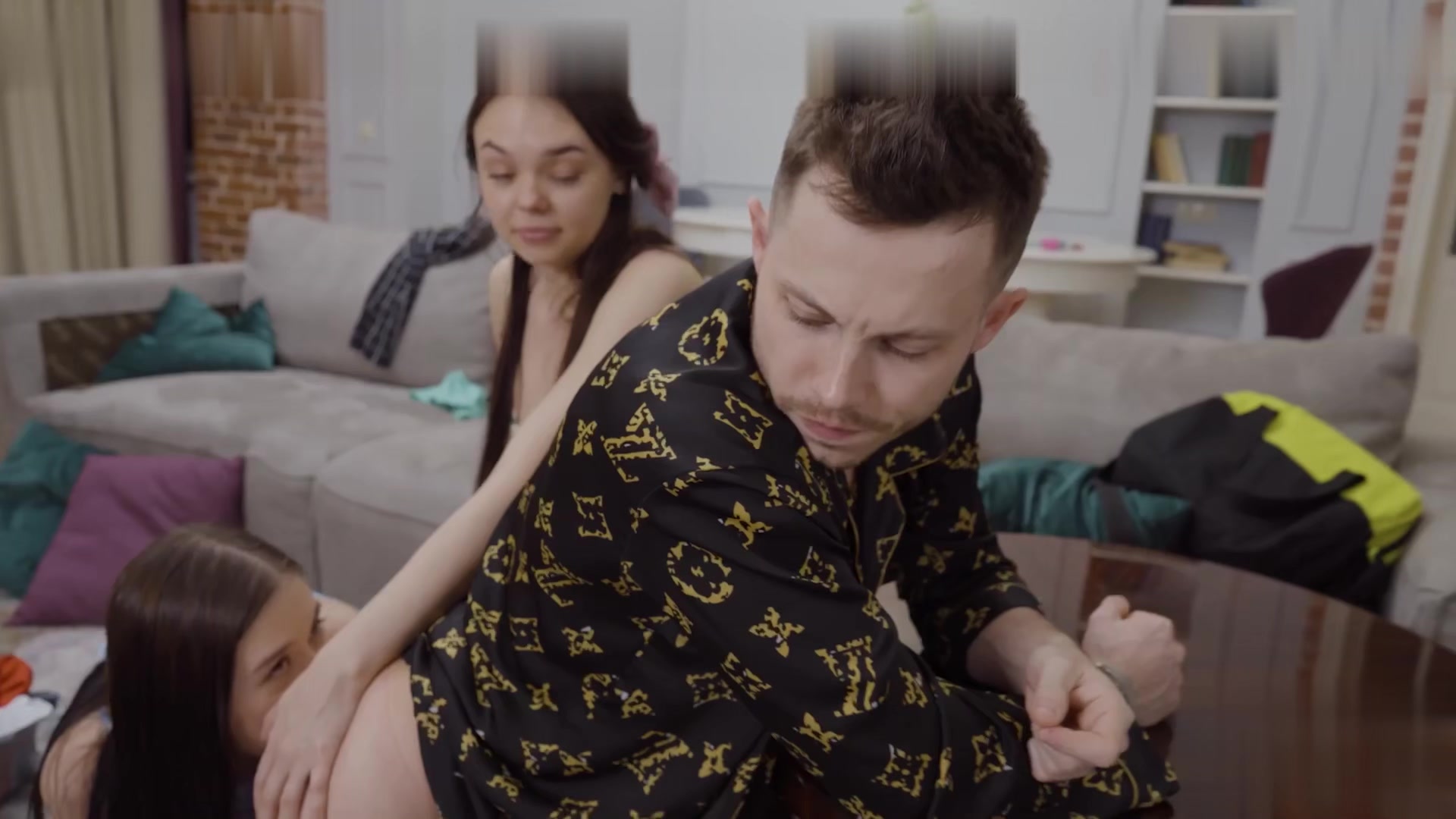 双女郎同时性服务型男躺下一起吃鸡巴操穴啪啪