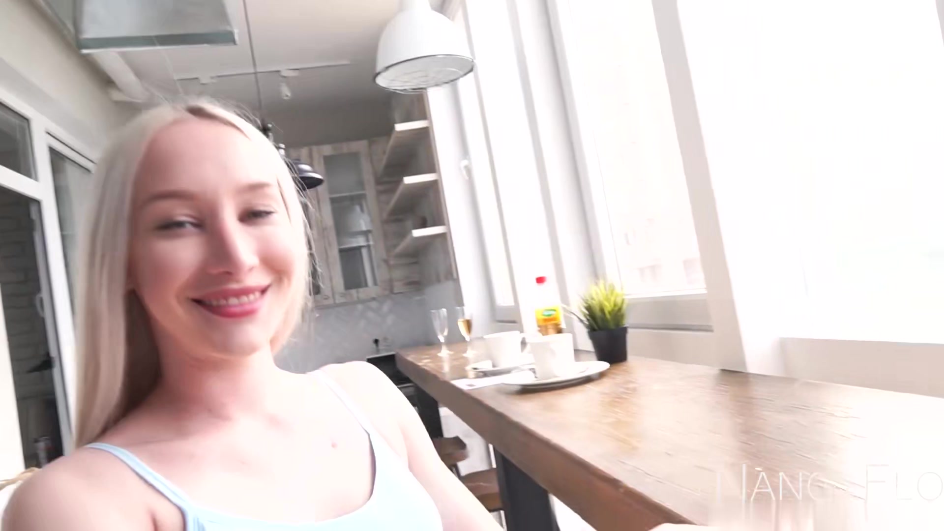金发白虎少女穿上黑丝为男友服务