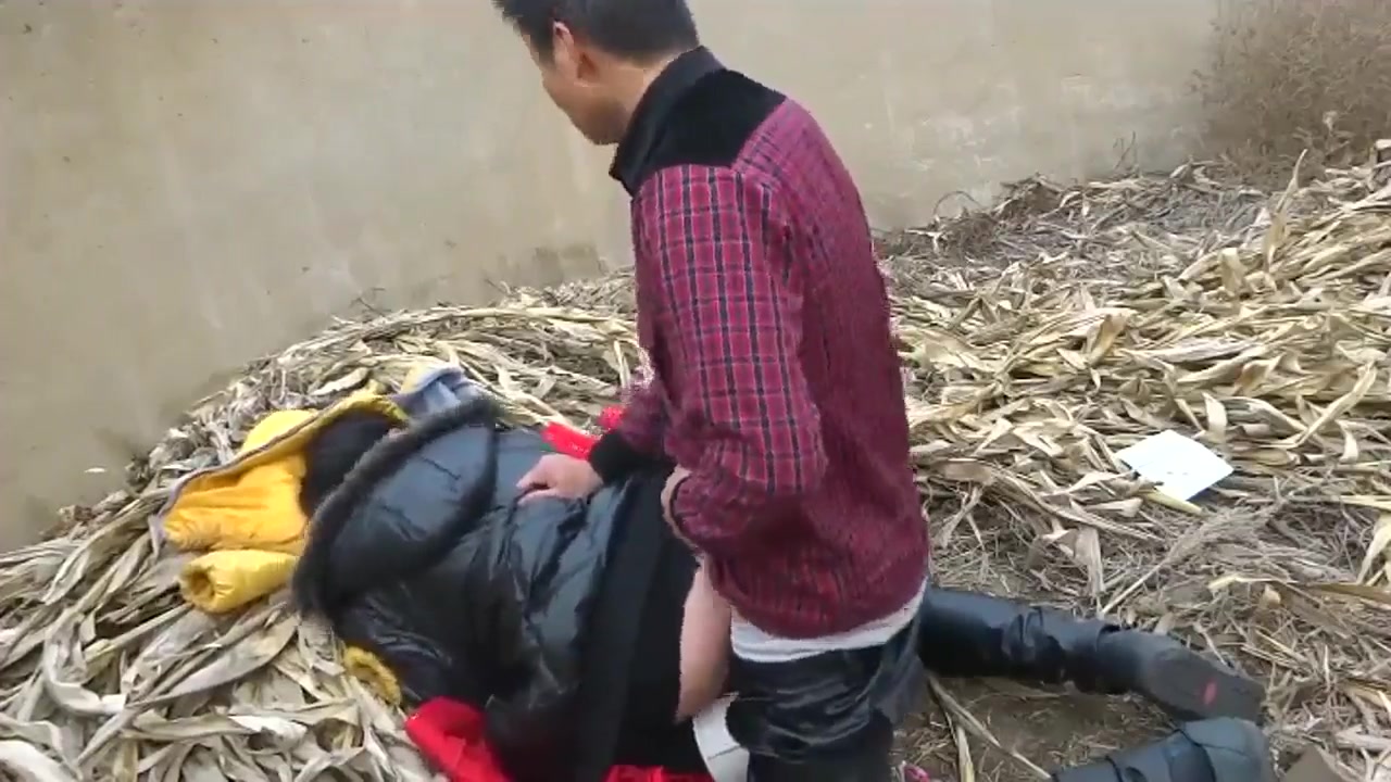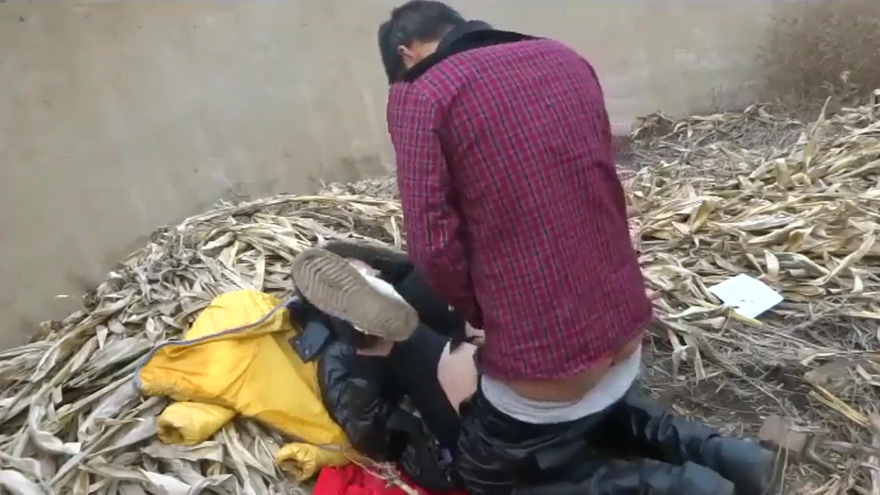 表妹和男友在田间干枯的蓄水池