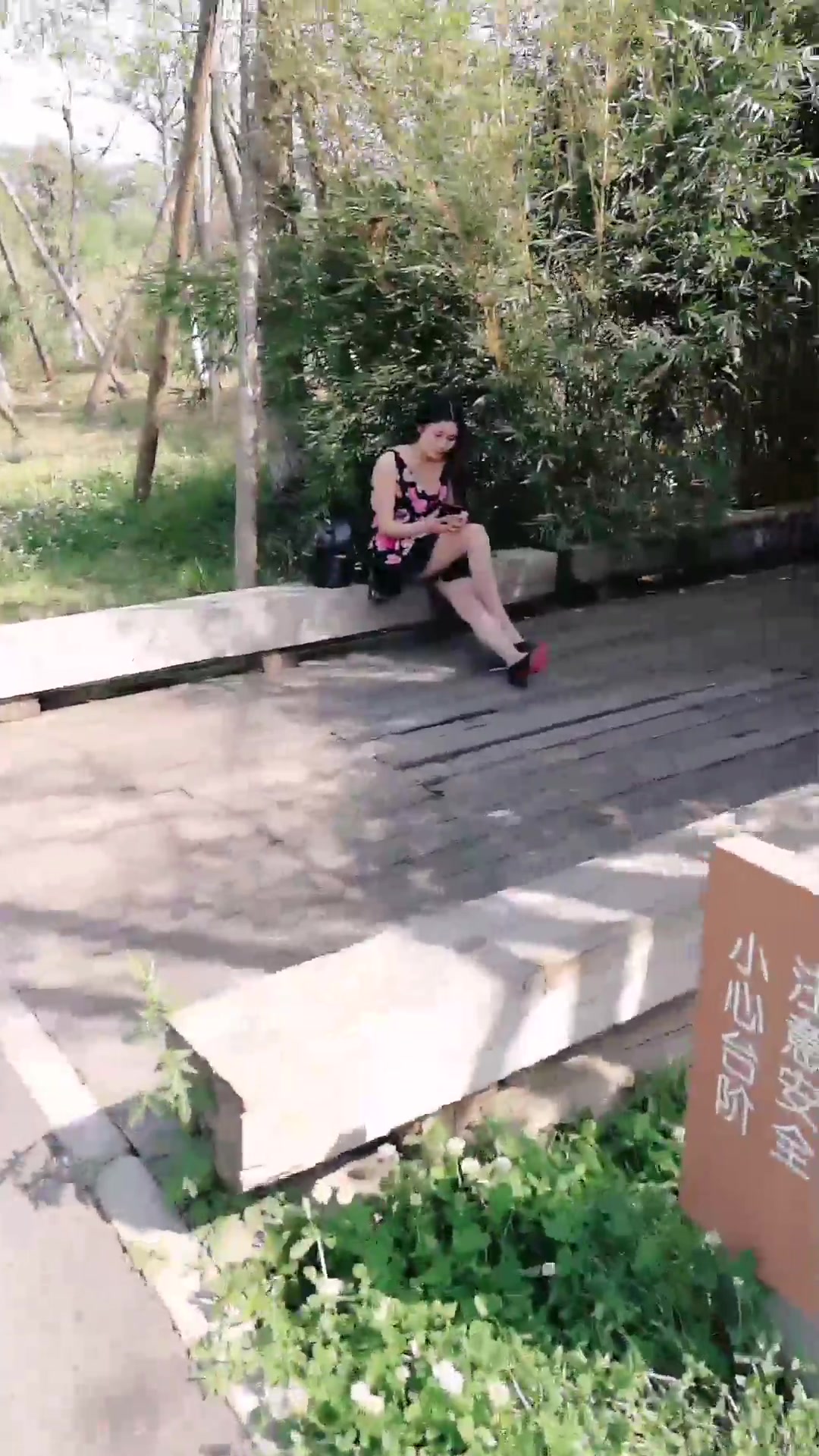 晨起公园锻炼搭讪性感连衣裙美女到路边小道打野战,路上人来人往女说:有人要来了,快射吗,停不下来就使劲操我!