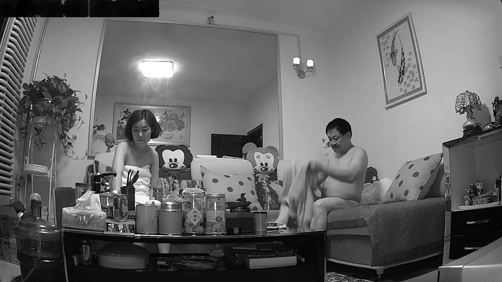 破解摄像头偷窥洗完澡出来的美少妇和留着小胡子像范伟老公在沙发啪啪1080P高清
