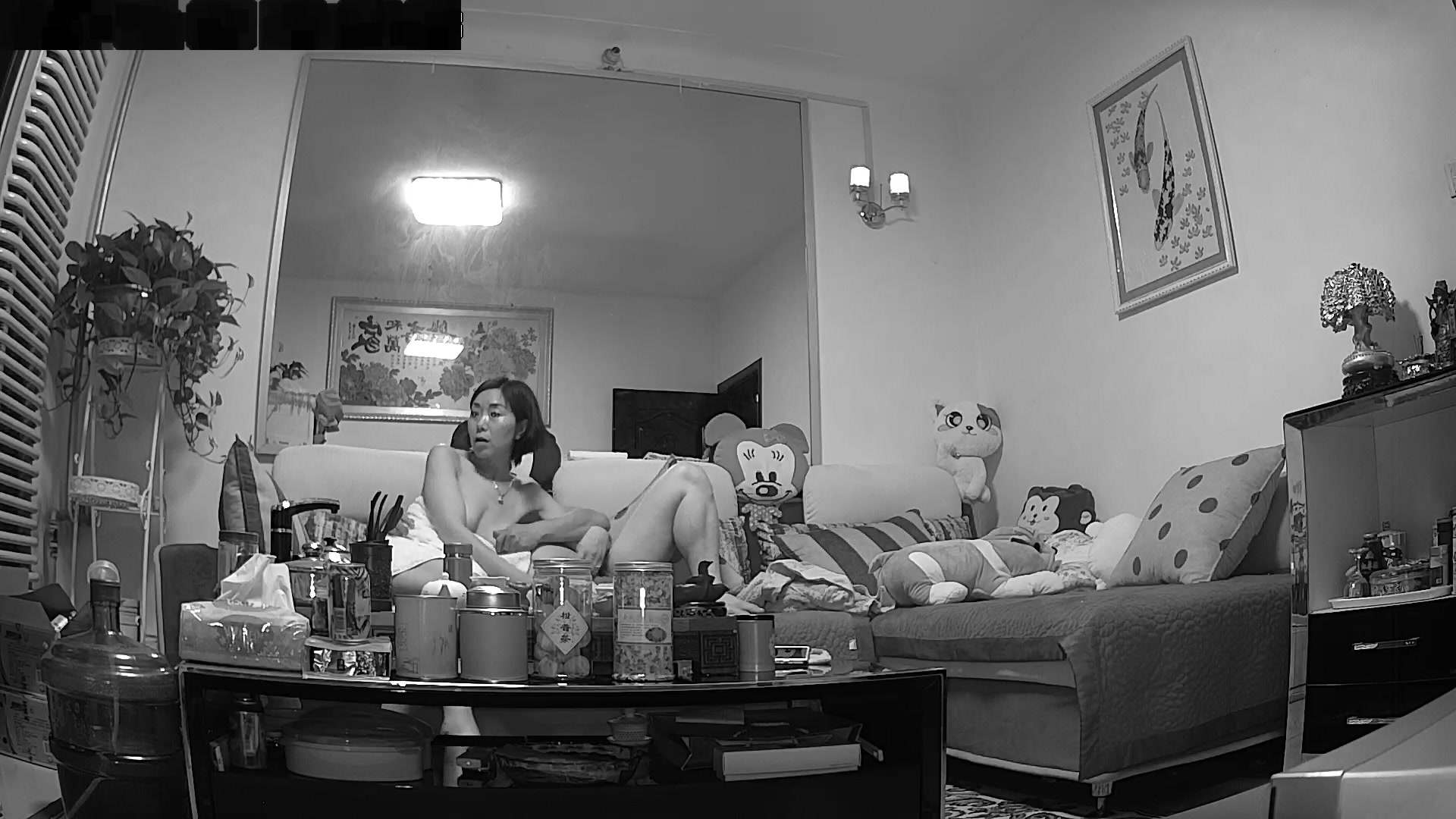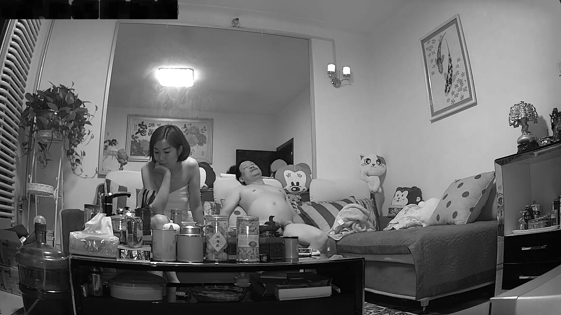 破解摄像头偷窥洗澡出来的美少妇和留着小胡子的老公在沙发啪啪